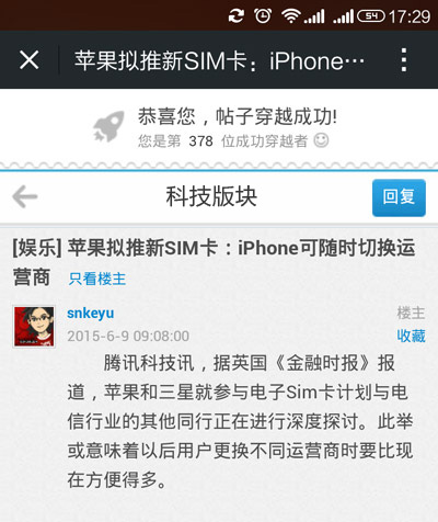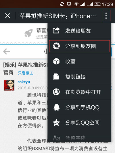 手機(jī)穿越看帖分享朋友圈就是這么簡單